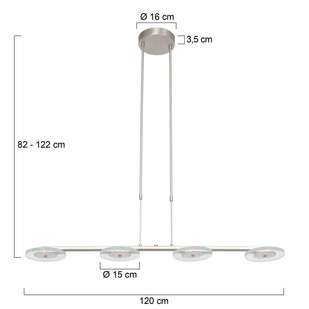 Durch einfaches Lösen der beiden Schrauben am Seil lässt sich die Leuchte stufenlos zwischen 82 cm und 122 cm in der Höhe verstellen. Die Steinhauer Soleil 3216 LED-Pendelleuchte verfügt über einen praktischen Tastdimmer, mit dem das Licht stufenlos gedimmt werden kann. Eine Dimm-to-Warm-Funktion erlaubt die Anpassung der Lichtfarbe im Bereich von 2.200 bis 3.000 Kelvin. So können Sie die Lichtfarbe an die jeweilige Stimmung und Tageszeit anpassen.