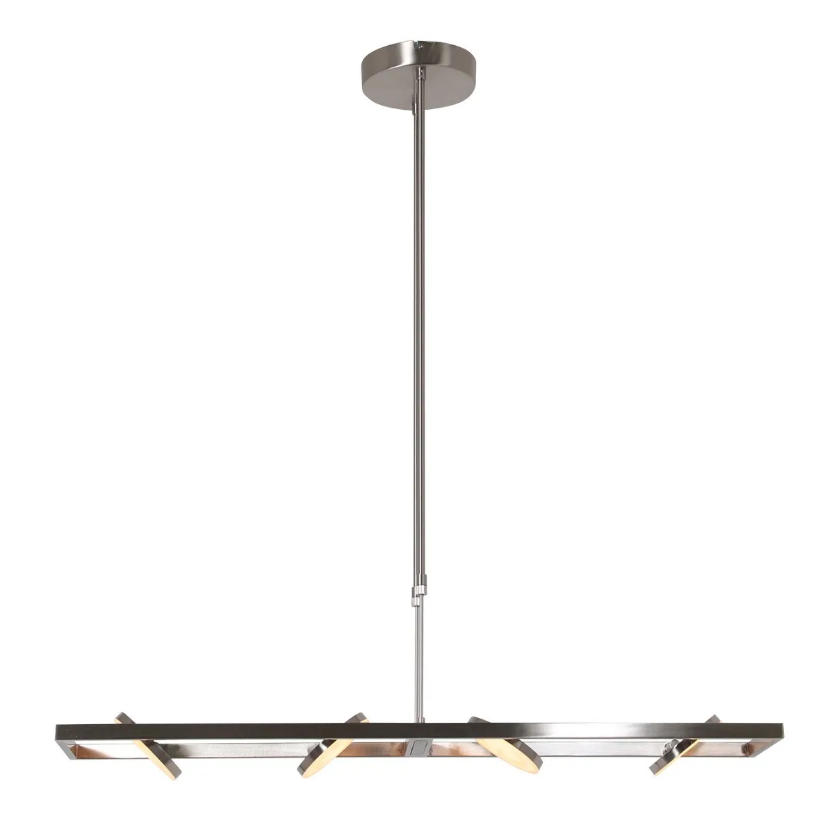 Steinhauer Soleil 3516 ist eine 4 flammige LED-Pendelleuchte, die eine individuelle Lichtgestaltung über Esstischen oder Kochinseln ermöglicht. Die stilvolle Leuchte kombiniert dabei geschickt fortschrittliche LED-Technologie mit einem zeitgemäßen Design, das sich perfekt in jede Einrichtung einfügt. Vier Leuchtenköpfe, die sich unabhängig voneinander ausrichten lassen, ermöglichen eine ausgewogene Raumbeleuchtung aus direktem und indirekten Licht. So lässt sich nicht nur die Arbeitsfläche individuell beleuchten, sondern auch ein angenehmes Raumambiente schaffen, das zum Verweilen und Genießen einlädt.