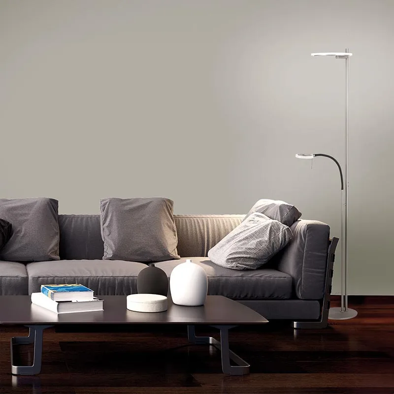 Als zusätzliches Feature verfügt der Deckenfluter über einen Flexarm, mit dem sich das Leselicht ganz einfach ausrichten lässt. Das Licht des Deckenfluters Turound ist dank stufenloser Dimmfunktion über den praktischen Tastdimmer komfortabel regelbar. Mit der zusätzlichen Tuneable White Funktion kann die Lichtfarbe im Bereich von 2.200 bis 4.000 Kelvin angepasst werden. So liefert die Leuchte nicht nur stimmungsvolles Licht für gemütliche Abende, sondern auch zum konzentrierten Lesen und Arbeiten.