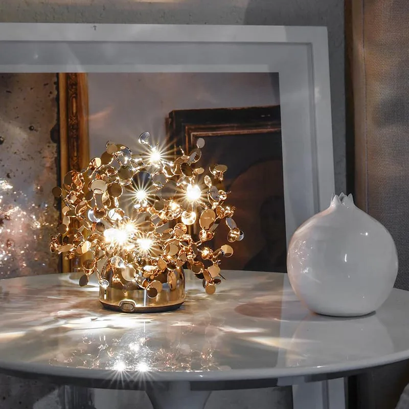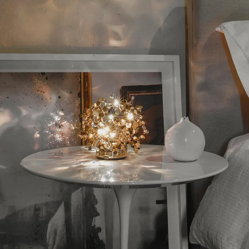 Die kabellose Tischleuchte Argent, mon bijou der italienischen Premium Lichtmarke Terzani kreiert zauberhafte Lichtspiele in Wohnräumen oder der Gastronomie. Die Leuchte, gestaltet vom Designer Dodo Arslan, ist ein wahres Meisterwerk. Sie besteht aus unzähligen kleinen Metallscheiben, die von den erfahrenen Terzani-Handwerkern sorgfältig von Hand zu Clustern geformt werden. Wird die Leuchte eingeschaltet, strahlen die zahlreichen, abgewinkelten Oberflächen der Scheiben ein sanftes, schimmerndes Leuchten aus, das jeden Raum in ein zauberhaftes Ambiente taucht.