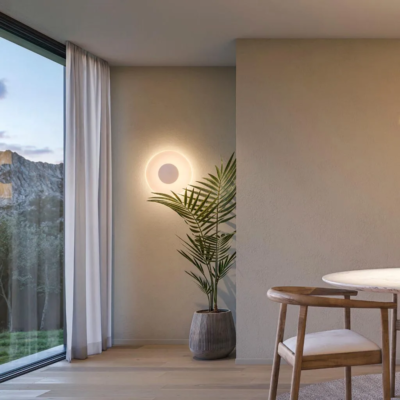 Wandleuchte zur individuellen Gestaltung. Der Leuchtenkörper lässt sich mit den dazugehörigen Linsen oder matten Gläsern kombinieren und schafft so verschieden Lichtstimmungen. Ein Farbfilter sorgt für stimmungsvolle Farbakzente. Mittels eines Kugelgelenks kann die Leuchte gedreht und ausgerichtet werden.
