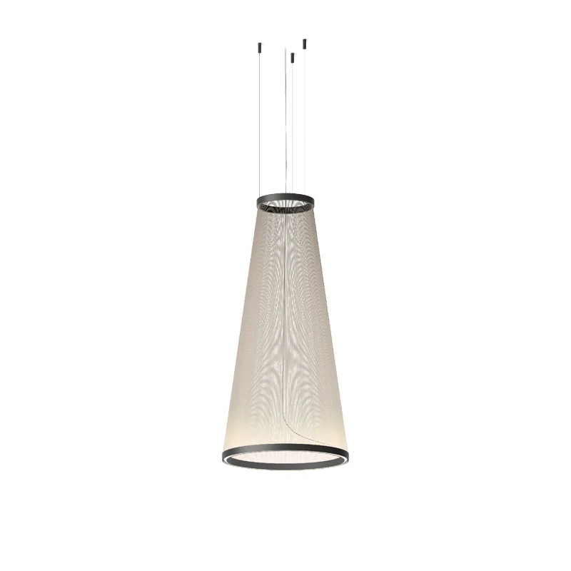 Vibia Array 1855 ist Teil einer umfangreichen Kollektion, die in verschiedenen Größen und Farbausführungen erhältlich ist. Jedes Stück wird mit akribischer Handwerkskunst und technischer Präzision gefertigt, wobei unzählige feine Fäden präzise zwischen zwei robusten Aluminiumringen gespannt werden. Die verschiedenen konischen und zylindrischen Formen dieser Leuchten schaffen in jedem Raum, in dem sie platziert werden, eine beeindruckende visuelle Installation.