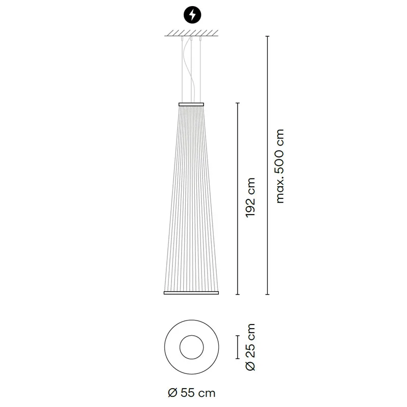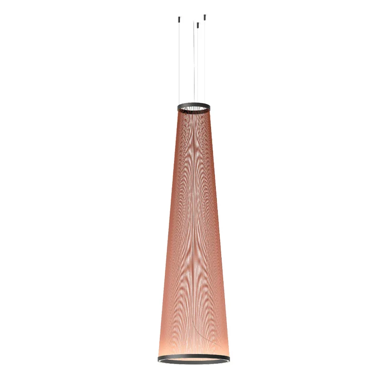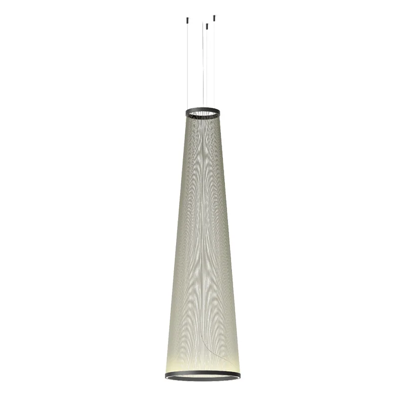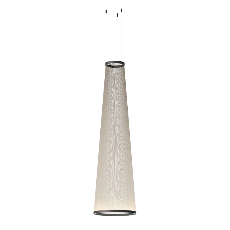 Vibia Array 1860 ist Teil einer umfangreichen Kollektion, die in verschiedenen Größen und Farbausführungen erhältlich ist. Jedes Stück wird mit akribischer Handwerkskunst und technischer Präzision gefertigt, wobei unzählige feine Fäden präzise zwischen zwei robusten Aluminiumringen gespannt werden. Die verschiedenen konischen und zylindrischen Formen dieser Leuchten schaffen in jedem Raum, in dem sie platziert werden, eine beeindruckende visuelle Installation.