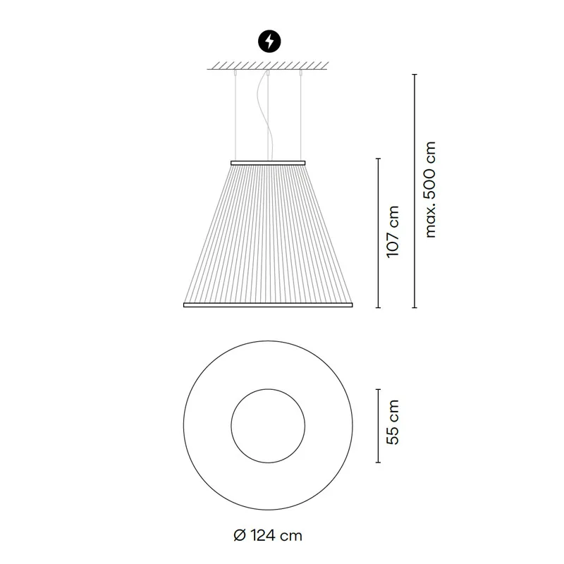 Vibia Array 1875 ist Teil einer umfangreichen Kollektion, die in verschiedenen Größen und Farbausführungen erhältlich ist. Jedes Stück wird mit akribischer Handwerkskunst und technischer Präzision gefertigt, wobei unzählige feine Fäden präzise zwischen zwei robusten Aluminiumringen gespannt werden. Die verschiedenen konischen und zylindrischen Formen dieser Leuchten schaffen in jedem Raum, in dem sie platziert werden, eine beeindruckende visuelle Installation.