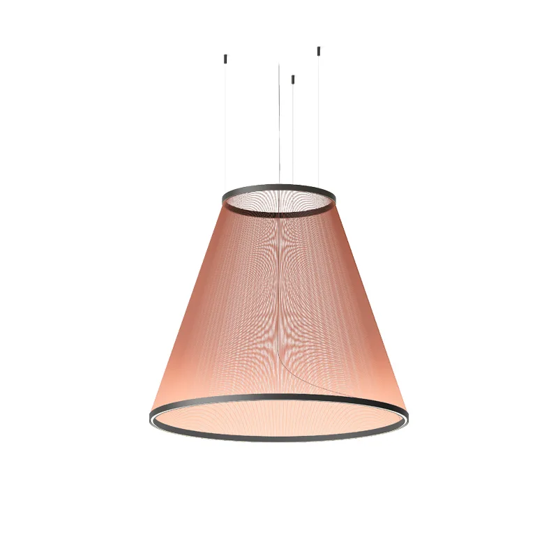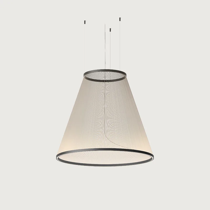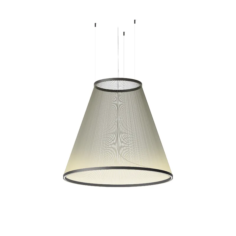 Mit ihrem atmosphärischen Licht kreiert die fulminante LED-Pendelleuchte Vibia Array 1875 ein Ambiente der Gemütlichkeit und Ruhe. Entworfen vom Designer Umut Yamac, besticht die imposante Hängeleuchte durch einen konischen Leuchtenschirm aus fein gesponnenen Fäden, der eine einzigartige Leichtigkeit und dynamische Komplexität ausstrahlt.