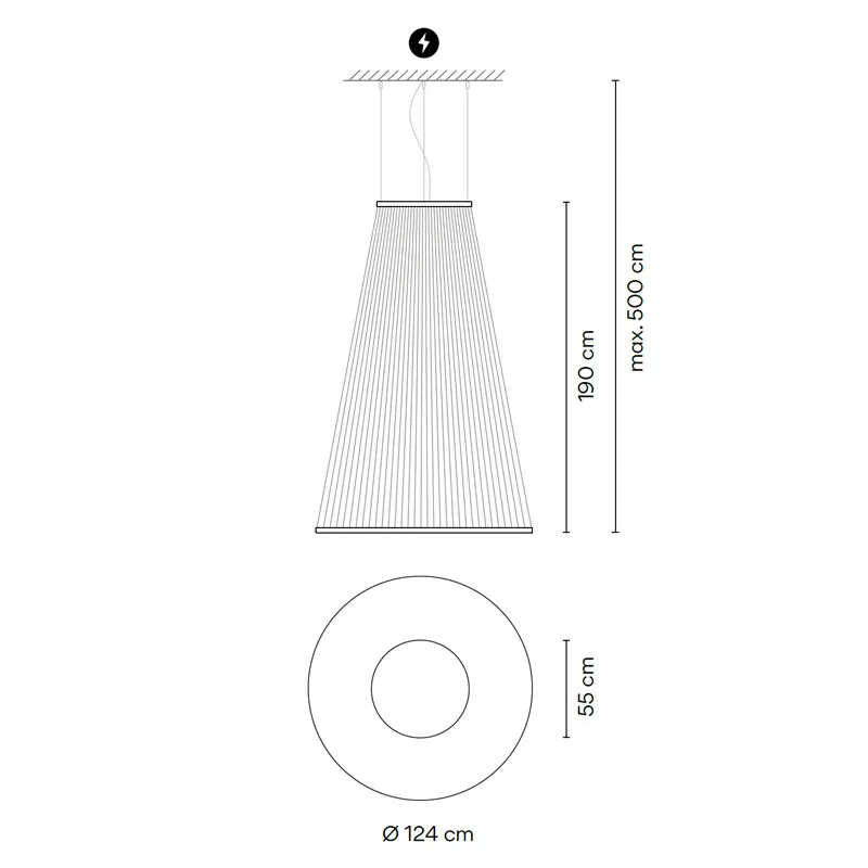 Vibia Array 1880 ist Teil einer umfangreichen Kollektion, die in verschiedenen Größen und Farbausführungen erhältlich ist. Jedes Stück wird mit akribischer Handwerkskunst und technischer Präzision gefertigt, wobei unzählige feine Fäden präzise zwischen zwei robusten Aluminiumringen gespannt werden. Die verschiedenen konischen und zylindrischen Formen dieser Leuchten schaffen in jedem Raum, in dem sie platziert werden, eine beeindruckende visuelle Installation.