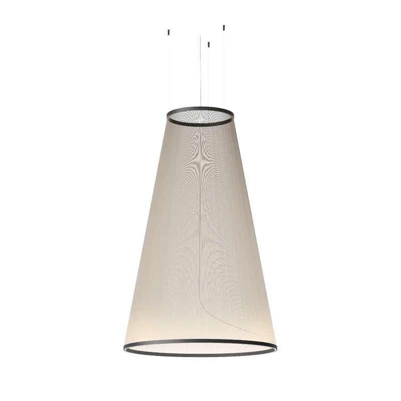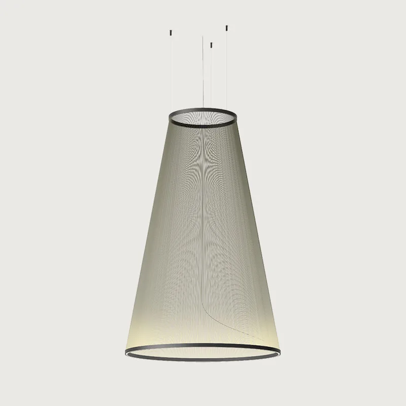 Mit ihrem atmosphärischen Licht verwandelt die fulminante LED-Pendelleuchte Vibia Array 1880 Räume in verführerische Refugien der Ruhe. Aus der visionären Feder des Designers Umut Yamac entsprungen, fasziniert diese Leuchte mit einem Schirm, der in seiner konischen Formgebung scheinbar mühelos schwebt und durch seinen gesponnenen Fäden eine einzigartige Leichtigkeit und dynamische Komplexität ausstrahlt.