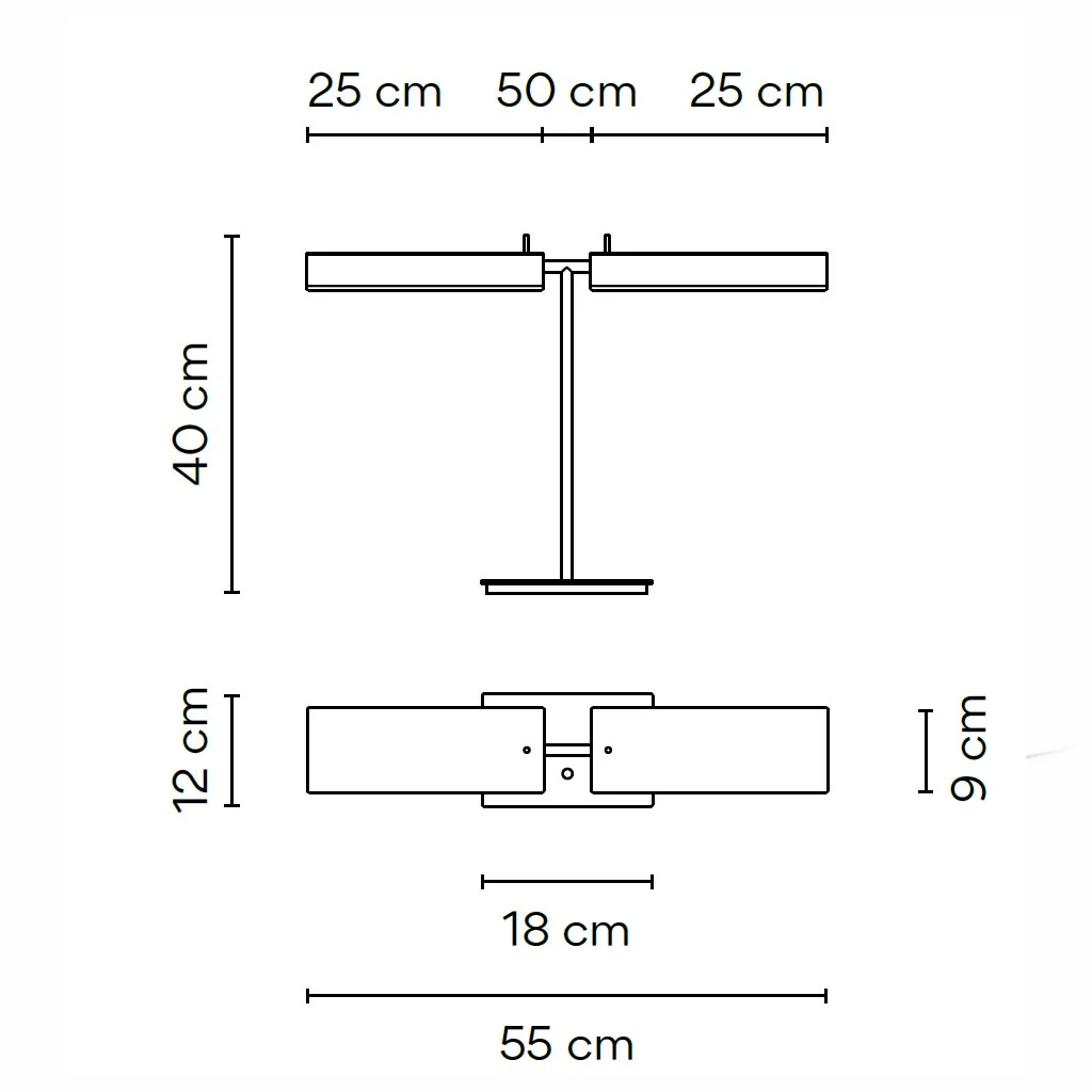 - Tischleuchte mit zwei Schirmen für breite Lichtverteilung