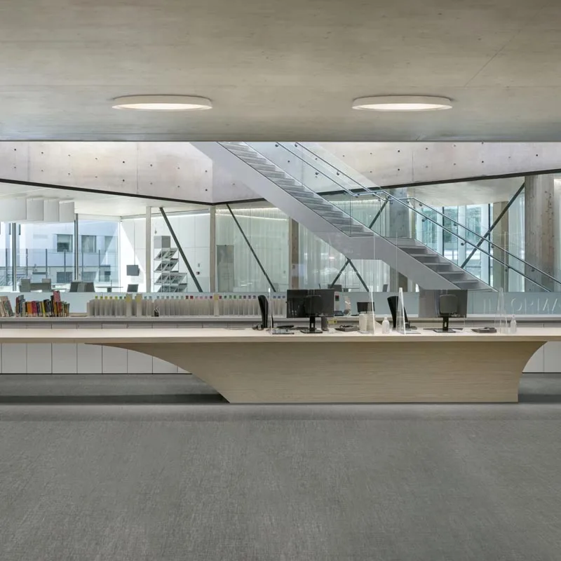 Der flache, opale Diffusor erzeugt ein gleichmäßiges, blendfreies Licht, das sich großflächig im Raum verteilt und eine ruhige, einladende Atmosphäre schafft. Ob in öffentlichen Bereichen, Hotellobbys, großzügigen Lounges oder modernen Wohnwelten – die Bigger 3910 bringt nicht nur Helligkeit, sondern auch architektonische Klarheit in den Raum.