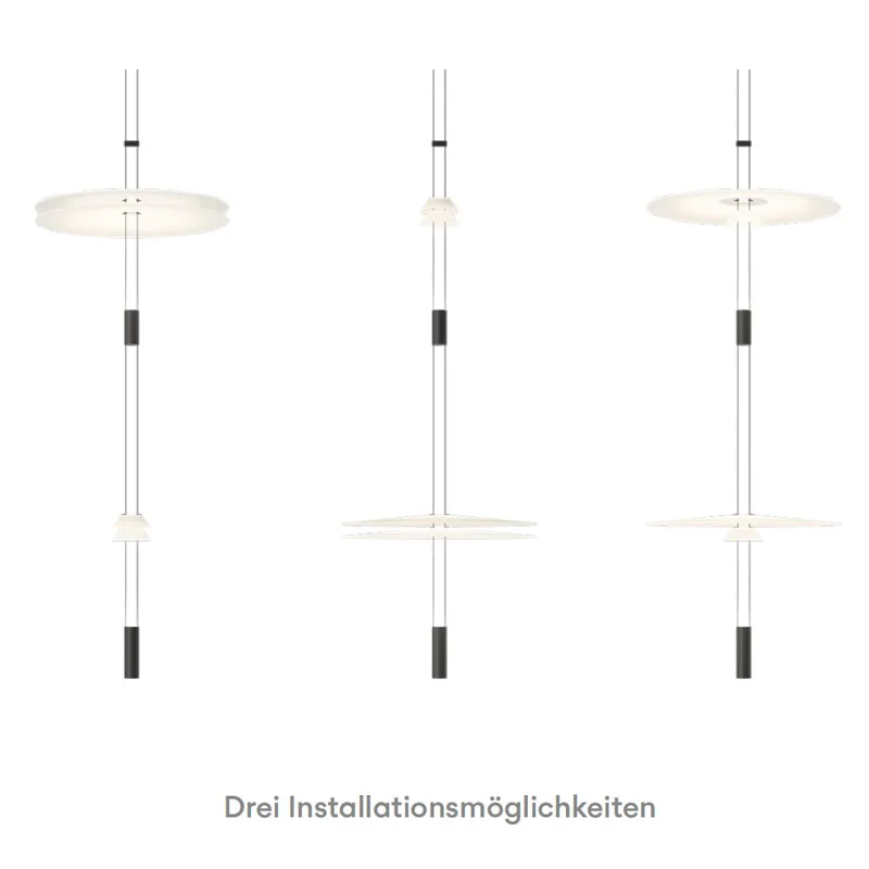In ihrer Funktion ist die Flamingo Mini 1590 äußerst flexibel. Drei unterschiedlichen Installationsmöglichkeiten erlauben es, die Leuchte optimal in verschiedenen Umgebungen einzusetzen. Sei es in Wohnräumen, über Esstischen oder in Geschäftsbereichen – Flamingo Mini 1590 setzt stets ein starkes visuelles Statement und passt sich harmonisch dem vorgegebenen Raum an.
