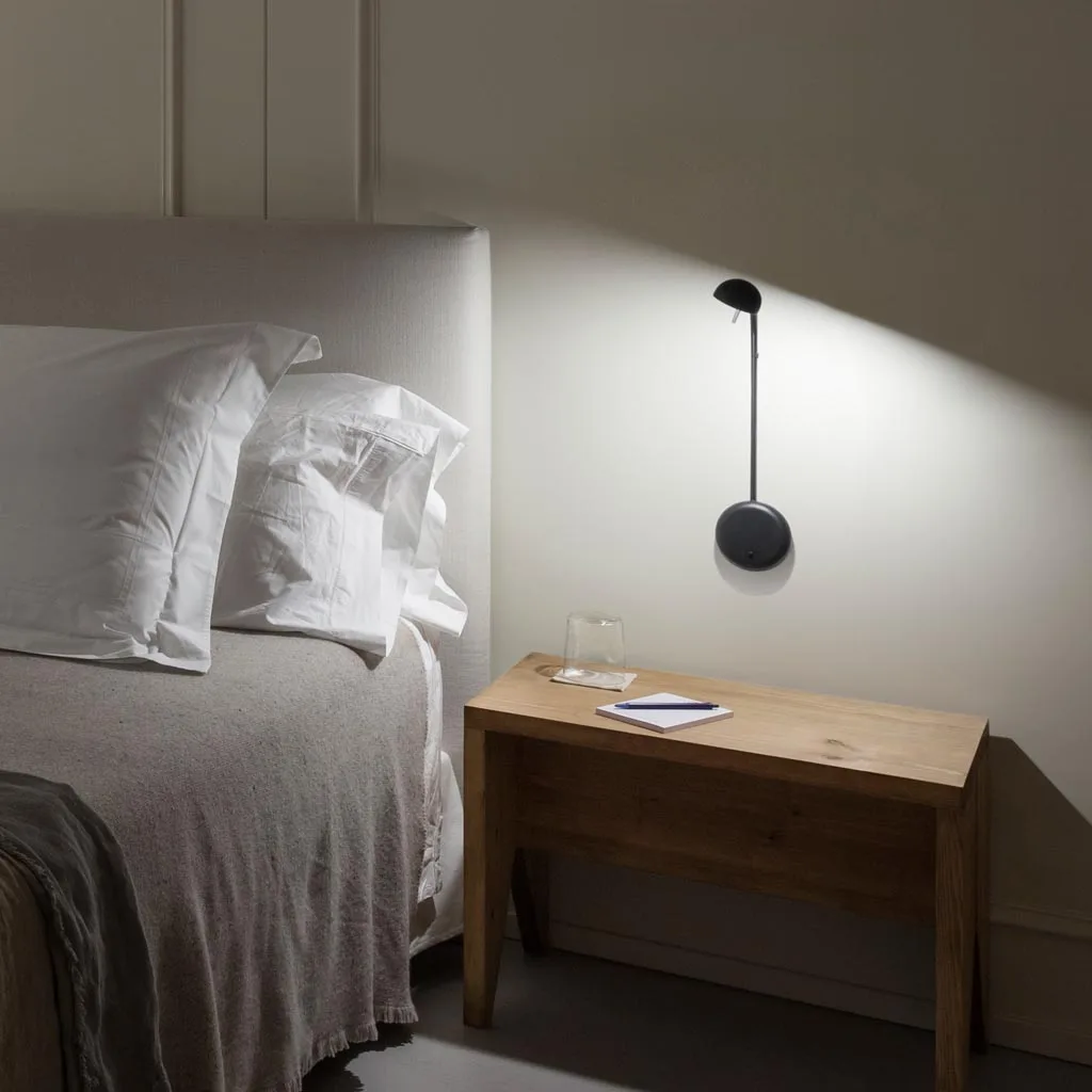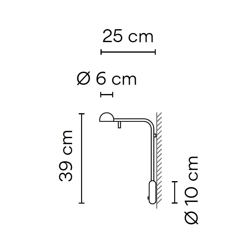 Die klare, reduzierte Formgebung zeichnet sich durch einen schlanken, geschwungenen Arm aus, der in einem halbkugelförmigen Leuchtenkopf endet. Der Leuchtenkopf schafft einen spannenden Kontrast zur filigranen Aluminiumstruktur und fügt sich harmonisch in moderne Interieurs ein. Der Arm ist um 90° schwenkbar, während der Leuchtenkopf um 350° gedreht und um 30–45° geneigt werden kann – perfekt für gezielte Lichtakzente oder indirekte Beleuchtung. Ein kleiner, dezenter Stift nahe dem Leuchtenkopf ermöglicht eine einfache Ausrichtung, ohne diesen direkt zu berühren.