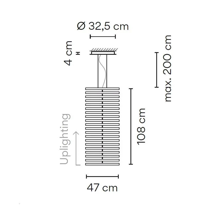 Das elegante, vertikale Arrangement der Rhythm Vertical wirkt wie eine schwebende Lichtskulptur im Raum. Eine zentrale Achse und feine Kabel halten die Konstruktion dezent in Position. Die einzelnen Polyamid-Stäbe, jeweils mit LED-Bändern und Polycarbonat-Diffusoren ausgestattet, können individuell rotiert werden. Dies ermöglicht die Kreation faszinierender Formen – von sanften Wellen über Spiralen bis hin zu geometrischen oder asymmetrischen Mustern – und verwandelt die Leuchte in ein dynamisches Lichtobjekt.