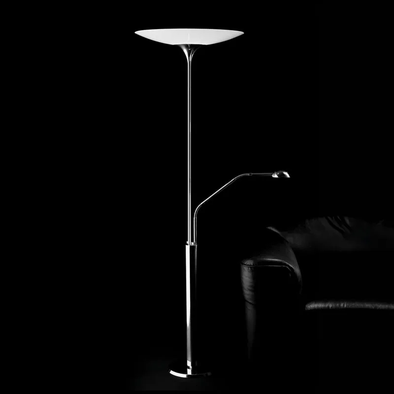 Durch den opalen Glasschirm verbreitet der Deckenfluter ein weiches, indirektes Raumlicht, das Ihre Räume in ein warmes, wohnliches Glühen taucht. Der integrierte Lesearm mit seinem präzisen Reflektor sorgt für direktes Licht, das ideal zum Lesen ist. Dank den zwei Flexwellen lässt sich das Leselicht optimal ausrichten, sodass Sie stets die perfekte Beleuchtung für Ihre Lektüre haben.